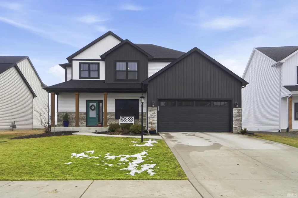 Beautifully maintained and feeling new, this home is ready now so you can skip the construction timeline and move right in at closing. The exterior features craftsman-style details and a welcoming front porch. Inside, the open-concept layout includes an oversized living room with a modern fireplace and amazing natural lighting. Kitchen features a large island, custom cabinetry, soft-close doors and drawers, and an eat-in nook with a cathedral ceiling. All appliance remain including washer and dryer. A dedicated mudroom with lockers is located directly off the garage. A flexible front room can serve as an office, dining room, den, or playroom. Upstairs you will find four spacious bedrooms, including a primary suite with a double vanity, walk in closet, and step in shower. Additional space and future possibilities await in the full unfinished basement, complete with plumbing rough in for a half bath. Tastefully decorated with thoughtful paint selections and added cabinetry throughout. Enjoy pond views from the backyard, complete with landscaping and fencing already installed.