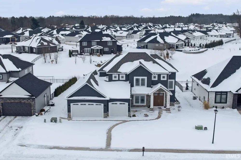 Nearly NEW CONSTRUCTION Kline Custom Home in the highly sought-after Northbridge Valley neighborhood (Penn Schools). Perfectly positioned on the water, this 6 bedroom, 5 bath home has everything you've been looking for. Loaded with custom upgrades you won't find in your average builder spec including custom mill work with lockers and benches in the foyer and garage entry areas, stained beams in the primary suite with dual walk in closets, and kitchen & bath enhancements. This home features a main floor bedroom and full bath that could be a perfect mother-in-law suite or home office. Designed with modern living in mind, the open floor plan features soaring 9+ foot ceilings, loads of natural light and windows looking out to the water and outdoor living space and an oversized mudroom with convenient laundry. The chef's kitchen is a showstopper with its 9-foot quartz island, walk-in pantry, wine chiller, top-of-the-line Whirlpool appliances, and beautifully crafted custom cabinetry. Upstairs, the luxurious primary suite boasts beamed ceilings, dual walk-in closets, and a spa-like bath with an oversized tile shower. You'll also find three additional spacious bedrooms , one with its own en-suite bath, as well as a second laundry area. The finished basement adds even more living and entertaining space, including a sixth bedroom, a full bath, a large kitchen w/ bar, and a generous family room. Outdoor enthusiasts will love the backyard's custom corn hole pads and water views! With countless upgrades and thoughtful touches throughout, and mature yard and landscaping this home is better than NEW. Schedule your showing today!