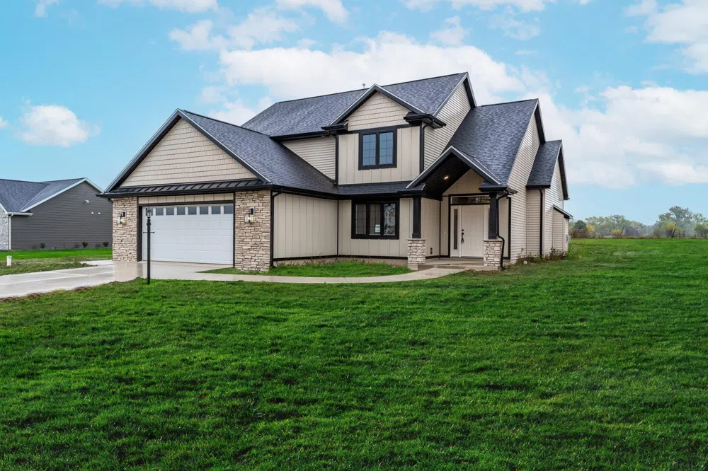 ***OPEN HOUSE CANCELLED February 18th 1-3***Wow, you will love this country property in the friendly town of Grabill. This 2334 sq ft two story with master on main, features custom made kitchen cabinets in both white and black with quartz countertops, microwave, gas range and dishwasher. Large great room with fireplace, beams and laminate flooring. Impressive entry with wood wainscoting, open den/dining room. Wrought iron railing leading to roomy upstairs bedrooms (3) plus a flex or bonus room. Covered patio looks out over the half acre lot that suitable for an OUTBUILDING if needed. Grabill features library, coffee shop, hardware, veterinary clinic, antique shops, grocery stores, restaurant, dollar general and so much more. BUILDER will AGREE TO PUT UP AN OUT BUILDING AT builders COST at buyers expense IF BUYER DESIRES.