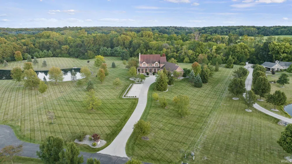 This is the property you've dreamed of. Gorgeous, stately 2-story custom built home on 10 acres with an expansive walkout basement. Custom woodwork everywhere including newly finished natural hardwood floors. Amazing kitchen with open concept includes gourmet kitchen island with granite counter tops, cherry cabinets, walk through pantry as well as a Butler Pantry. The kitchen also features 2 dishwashers, a built-in oven and gas cooktop. A chef's dream come true! Huge owner's suite with sitting room and fireplace that is shared with master bath and large walk-in closet with island. Relax in your jetted tub or new custom subway heated tile shower. The main level formal dining room, great room, and library with fireplace. 4 car attached garage with large walk-in attic above. There is a large mudroom with built-in lockers. Basement includes a family room, kitchen, theater room with media closet and extra room. Screened porch upper level and lower level patio allows for full enjoyment of nature in this spectacular setting. Enjoy all the space you need, inside and out. There is privacy and room to roam on this gorgeous property with 6 acres of woods. Must see to be able to take in all that this one has to offer!