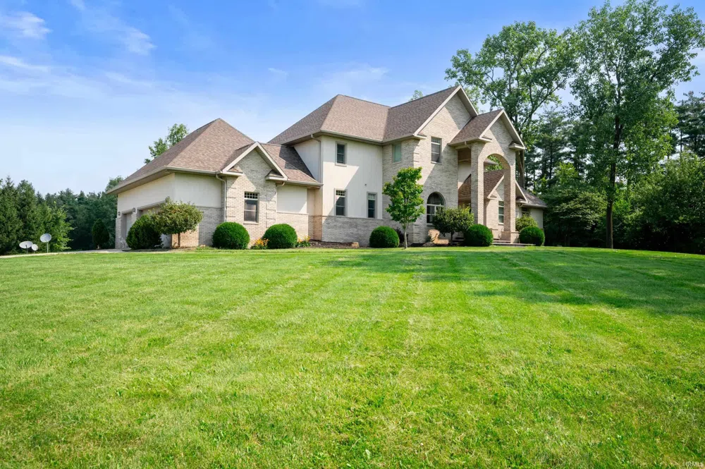 DELTA SCHOOLS!!! Luxurious Estate on 35 Acres of secluded woodland within 30 minutes of IU Ball Memorial Hospital. This stunning estate is the perfect place to relax and unwind in privacy. The 35 acres of wooded land are home to two ponds and an inground pool, providing endless opportunities for recreation and enjoyment. The 2-story home has a walkout finished basement, providing plenty of space for entertaining guests or relaxing with family. The main level features a gorgeous living room with a fireplace and 22-foot vaulted ceilings, a gourmet kitchen with stainless steel appliances and a walk-in pantry, and a formal dining room with a vaulted ceiling. The primary bedroom has a private view of the woods, a large walk-in closet, and an incredible bathroom with heated floors, dual vanities, a walk-in shower, and a Jacuzzi tub. The walkout basement is also amazing, with a family room and bar, a wine room, a craft room, media room with home theater system included, and ample storage. Audio is available throughout the home. The home is also equipped with state-of-the-art amenities, including a geothermal furnace, a sump pump with battery backup. The three-car garage has attic access and an outside door to the deck.