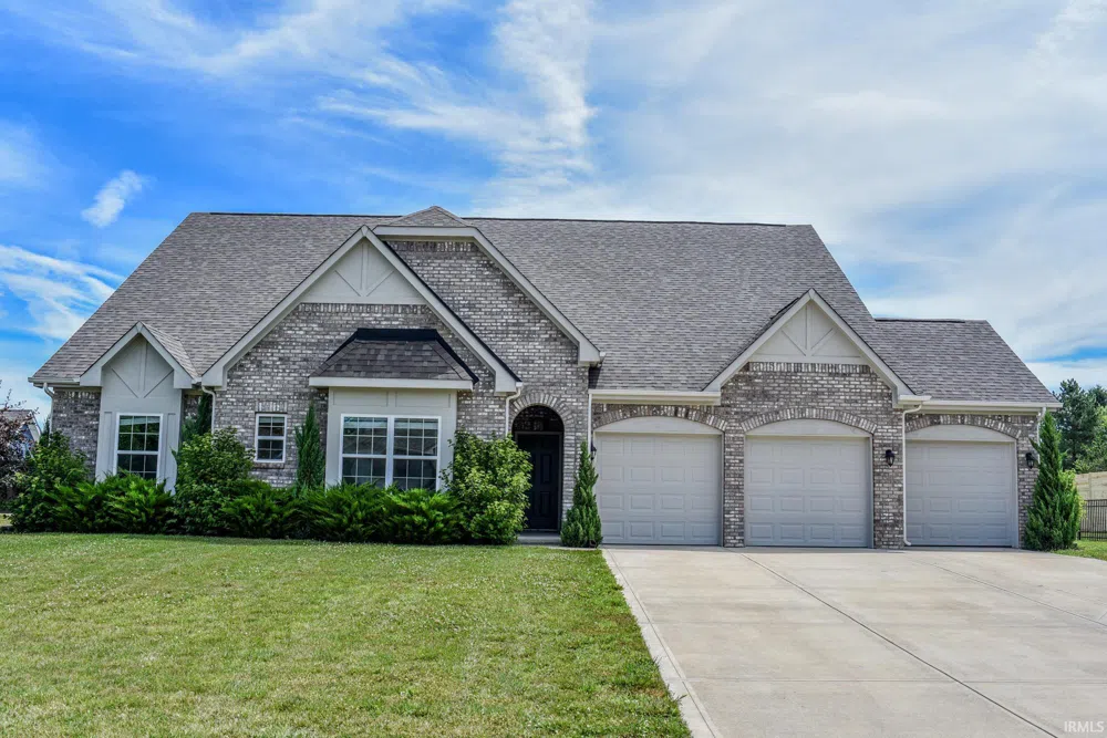 This huge, all brick ranch in premier, custom neighborhood rests on a .40 acre lot. Out front there's a covered brick entrance. Out back, a large covered patio. The 3-car garage features a big bump-out for storage. Large hallways boast lots of vinyl hardwoods. Gorgeous kitchen with staggered-height cabinets, subway tile back splash, exceptional quartz counters, large island for bar stool, double oven, refrigerator, cooktop and dishwasher. Washer & dryer stay & there's a rented water-softener installed as well. Huge great room allows lots of natural light. There are upgraded fans and light fixtures throughout. Split bedroom floor plan with large owner's suite, tile shower & floors, dual sinks, window, water closet, linen closet and large walk-in-clothes-closet. 4th bedroom currently configured as office with vinyl hardwood floors, WIC and french doors. 2.5 baths. Nice bonus room at entry from garage would make excellent mud room or additional pantry/craft/office space. One-year home warranty included.
