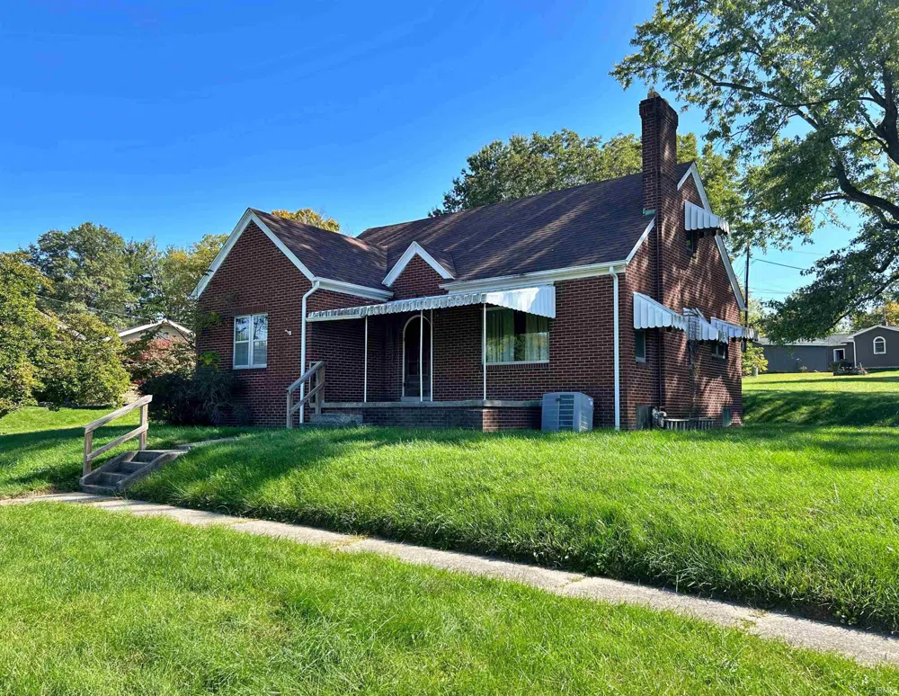 1 1/2 story brick home located at the edge of Loogootee on .90 acre +/-! This home is waiting for someone to make it beautiful again. Main floor includes large living room with fireplace, spacious kitchen, 2 bedrooms, and a full bath. Upstairs features 2 bedrooms, half bath, and lots of built-in storage. Large basement offers much more potential and a covered front porch.