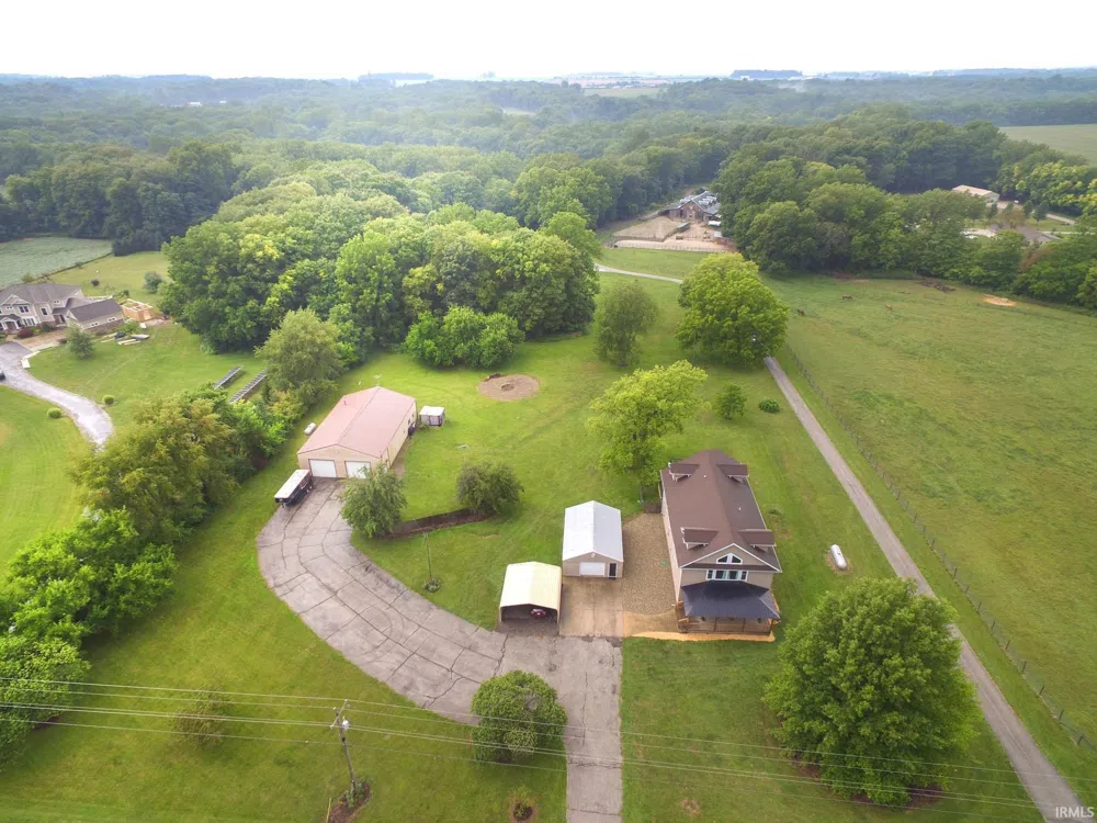 Gorgeous 3700 sq. ft., 4 bedroom, 4 full bath totally renovated home on a 2 acre mini farm with pole barn, garage, carport and fantastic views! Highly desired location in McCutcheon School District with easy access to I65, GE, Subaru, shopping, restaurants & more. From the covered front porch to the firepit and multi tiered rear deck, this one will impress the most discriminating purchaser. Inside…it truly feels like new construction! The Chef’s kitchen delivers gleaming quartz counters, walk in pantry, and a substantial island that is the center of all gatherings! 2 ensuites…one on the main floor and a fantastic owner suite on the upper level with a bright sun room! The 40 X 60 pole barn has a studio apartment with high ceilings that is currently rented (mo. to mo. $950) & would be a great spot for guests or college students. Tenant desires to stay…so it could be income producing as well! Mature trees, including apple & pear. Tons of storage. Hurry on this beauty!