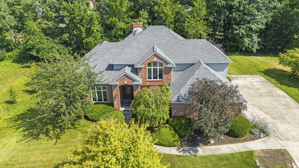 open House Sunday 9/14/25 from 1 to 3!! Nestled in the desirable Inverness Lakes of Aboite Township, this impressive 4-bedroom, 4 full and 2 half-bath home offers over 4,600 sq ft of finished living space, plus 600+ sq ft of dedicated storage. A two-story foyer welcomes you into elegant main-floor living, featuring a formal dining room with crown molding and hardwood floors, a soaring 23-ft ceiling in the great room, and a wall of two-story windows framing the stately fireplace. The main level primary suite includes a private office with tray ceilings and a spacious en suite featuring a jetted tub, separate shower, and a generous walk-in closet. The gourmet kitchen boasts granite countertops, tile backsplash, Harlan maple cabinetry, and flows seamlessly into the bright breakfast room. Downstairs, the finished daylight basement is an entertainer’s dream with a wet bar, pool table, dart board, full bath, and cozy gathering room with fireplace. A hobby/office room with dual walk-in closets, one is a cedar closet, adds flexible use. The home also features a 3-car garage and an upper level with three large bedrooms—one en suite and two connected via a Jack-and-Jill layout with private vanities. Roof is 10 years old, furnace & a/c are 4 years old and water heater is new in 2025 Outside, enjoy peaceful evenings on the private 25x14 deck backing to mature trees. Conveniently located near I-69, dining, shopping, fitness centers, and the scenic Aboite Trails. This home truly offers the perfect blend of luxury, space, and location.